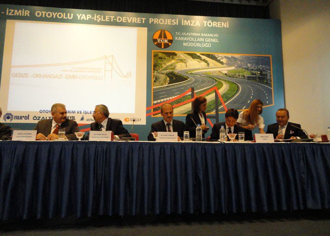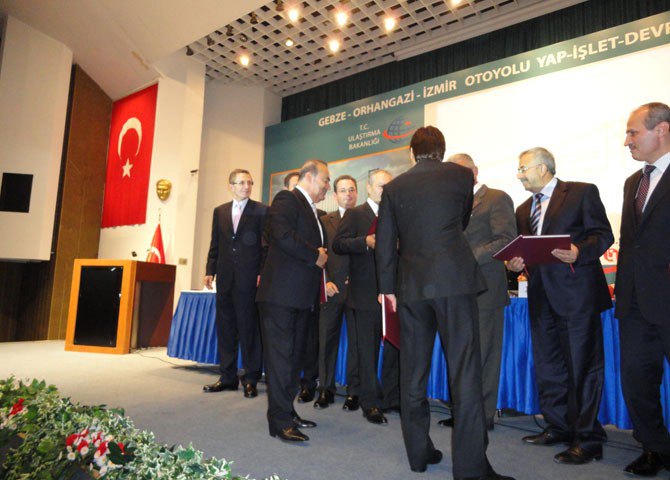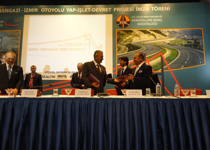 Gebze-Orhangazi-İzmir (İzmit Körfez Geçişi Köprüsü ve Bağlantı Yolları dahil) Otoyolu Projesi ihalesini kazanan Nurol-Özaltın-Makyol-Astaldi-Yüksel-Göçay Grubu ile 27.09.2010 tarihinde Karayolları Genel Müdürlüğü’nde sözleşme imzalandı.
